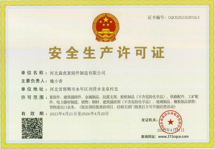 河北森虎緊固件制造有限公司成立于2011年,是建廠較早的緊固件企業。西臨京廣線,東臨京深高速,地理位置優越,交通便利。 主要生產:化學錨栓、機械錨栓、定型化學錨栓、高強度8.8級化學錨栓、自切底機械錨栓、車修壁虎,膨脹螺栓,植筋膠。 質量方針:先進技術、科學管理、優良品質、用戶滿意; ...